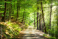 Grüner Wald im Sommer mit Sonnenstrahlen