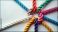 >Plakat>Colorful ropes intertwined in circle showing unity, teamwork. Diverse ropes connected represent business metaphor for partnership synergy. Image collective effort to achieve common goal with strong