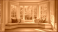 Sunlit bay window seat with cushions overlooking autumnal landscape.
