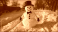 Fototapeta - Bałwan w cylindrze na śnieżnej ulicy