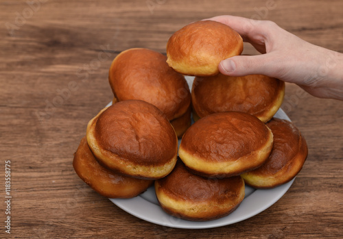 Fototapeta - Talerz tradycyjnych pączków drożdżowych, tłusty czwartek słodycze