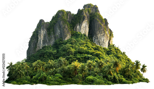 Fototapeta - PNG Green tall tropical mountain landscape nature forest.