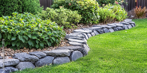Fototapeta - Beautiful garden landscape with stone edging and greenery