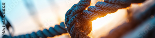 Fototapeta - Close-up Photograph of a Knotted Rope at Sunset