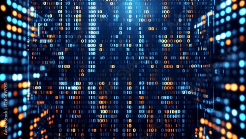 Complex network of binary code representing modern technology