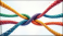 Intertwined colorful ropes symbolize team unity, connection, strength. Diverse group collaboration, interdependence, support. Knot represents partnership, integration, teamwork, togetherness,