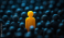 Conceptual image of a unique yellow person standing out in a sea of dark figures, representing brand differentiation and standing out from the