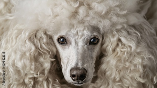 Fototapeta - Zbliżenie na białego pudla z bujną fryzurą