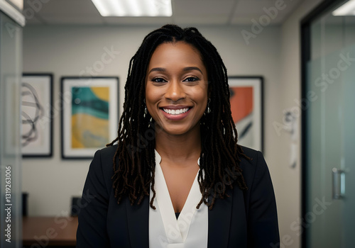Fototapeta - confident african-american businesswoman smiling in modern office