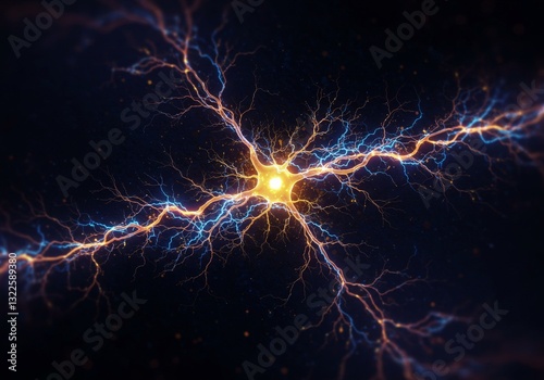 >Plakat>A striking visual representation of the immense energy and interconnectedness within neurons, symbolizing their role in transmitting information across the brain.