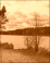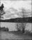 Samotny krzak rosnący na brzegu jeziora, dynamiczne zachmurzone niebo