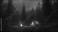 Esperienza di campeggio e avventura in una tenda illuminata, allestita in una foresta, sotto il cielo buio della notte stellato.