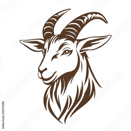 Fototapeta - Detailed Brown Ink Drawing of a Goat's Head