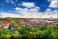 Beautiful summer panorama of Vilnius old town with colorful hot air balloons in the sky