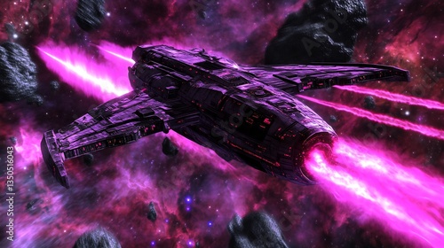 Futuristic spacecraft observing a dying star collapsing into a black hole emitting powerful gamma ray bursts