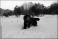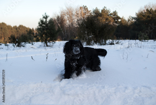 Fototapeta - czarny pies bawiący się w śniegu