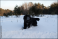 czarny pies bawiący się w śniegu
