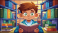 Closeup America boy reading text book in library.