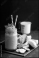 Fresh blended Banana and avocado smoothie with yogurt or milk in mason jar, healthy eating, superfood