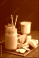 Fototapeta - Fresh blended Banana and avocado smoothie with yogurt or milk in mason jar, healthy eating, superfood