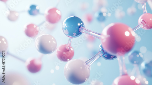 Fototapeta - 空中に浮かぶカラフル分子モデルの3Dビジュアル