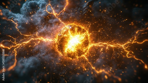 Fototapeta - Fiery, energized sphere within a turbulent, smoky environment