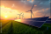 Harnessing renewable energy wind turbines and solar panels in a green landscape at sunset
