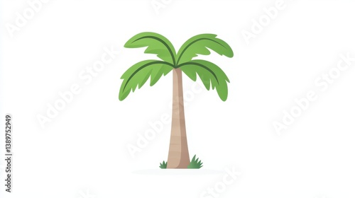 >Plakat>A vibrant palm tree with broad green fronds rises prominently against a simple background. The tropical vibe is enhanced by the tree's natural beauty and tropical aesthetic
