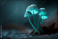 Fototapeta - Hongos bioluminiscentes brillantes en un tronco de árbol oscuro.