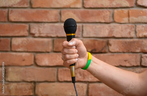 Fototapeta - Mikrofon trzymany w dłoni, izolowany