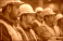 >Plakat>Group of construction workers wearing safety gear in safety meeting. Men, women wearing orange safety vests, hard hats. Workers discuss project safety protocol, guidelines. Industrial workplace, team