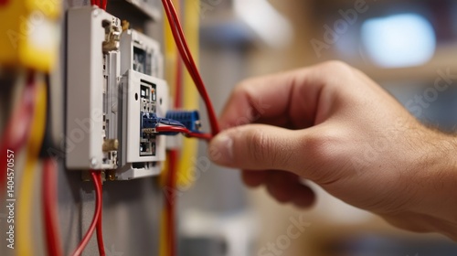 Fototapeta - Electrician wiring a light switch. Featuring electrical work and circuit wiring
