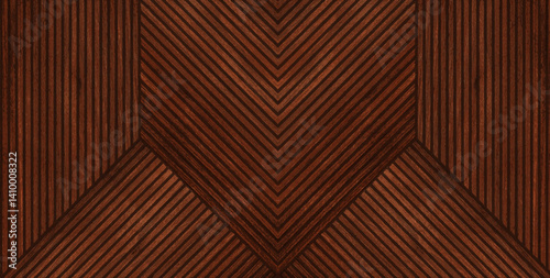 Fototapeta - A bold geometric wooden parquet design featuring rich brown diagonal and vertical lines.