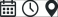 Date and time icon set featuring calendar, clock, and location symbols for planning and scheduling