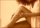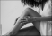 >Plakat>Young African American woman in white dress gently touching her smooth legs while sitting in minimal studio setting, representing skincare, softness, body care and feminine beauty in natural light