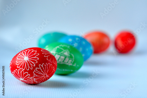 Fototapeta - Kolorowe, grawerowane jajeczka wielkanocne.