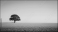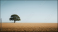 Solitary tree in an open field under a pale blue sky, peaceful minimalist nature scene