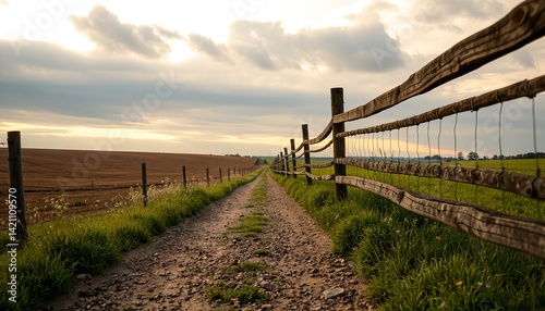 Fototapeta - Brown and green colors for photos of rural roads with landscape style fencing