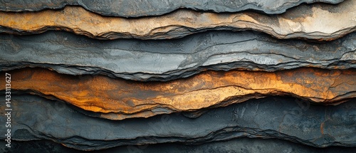 Fototapeta - geology fossil strata concept. Textured layers of slate in earthy tones create a natural, abstract background.