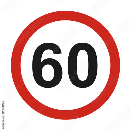 Fototapeta - A traffic sign indicating a speed limit of 60 kilometers per hour.