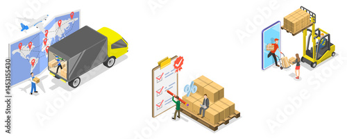 3D Isometric Flat Illustration of Efficient Logistics Coordination, Supply Chain Optimization