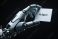 An AI agent robot handing a business card labeled AI Agent, collaboration in communication between humans and artificial intelligence.