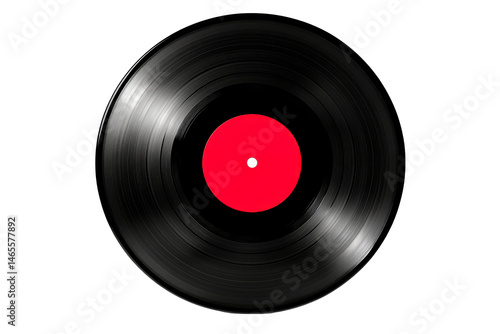 Vinyl record with red label, music media, black, cut out transparent