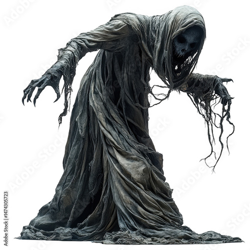Fototapeta - Creepy ghost halloween costume scary spooky ghoul horror dark apparition on transparent background
