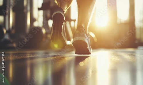 Fototapeta - Bieganie na bieżni w świetle zachodzącego słońca