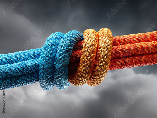 >Plakat>Intertwined ropes symbolize connection, unity, and strength. Partnership, collaboration, or teamwork concept. Metaphor for relationships, support, and solutions.
