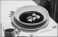 Fototapeta - Traditional Polish red borscht beetroot soup with dumplings served, festive table, barszcz czerwony z uszkami closeup of classic Poland christmas eve dish broth ravioli homemade holiday dinner concept