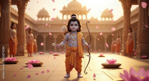 Little rama navami celebration hindu god indian festival bow and arrow divinity