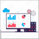 Fototapeta - Analiza danych na ekranie komputera z wykresami, chmurą i serwerem – koncepcja big data i technologii chmurowej