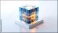 Fototapeta - A modular quantum processor sculpture with geometric blocks interlinked by light beams, sleek design, photorealistic render, isolated on white